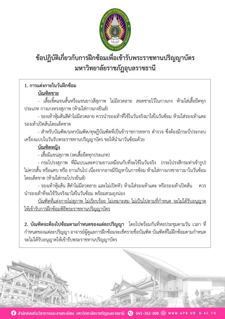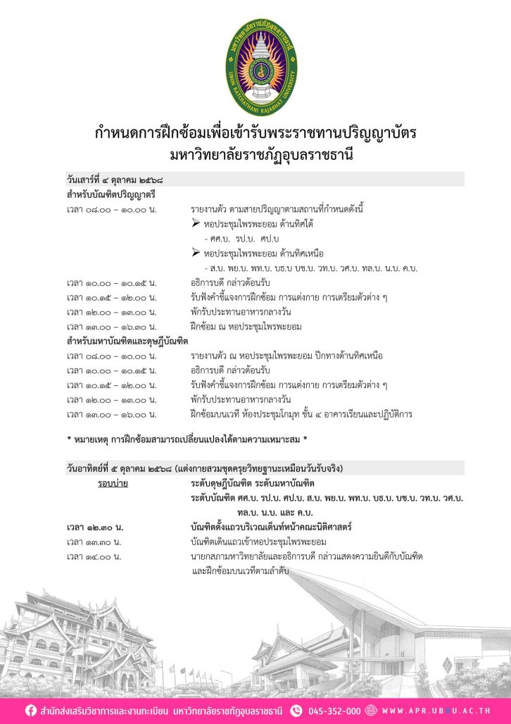 แจ้งกำหนดการเข้ารับพระราชทานปริญญาบัตร