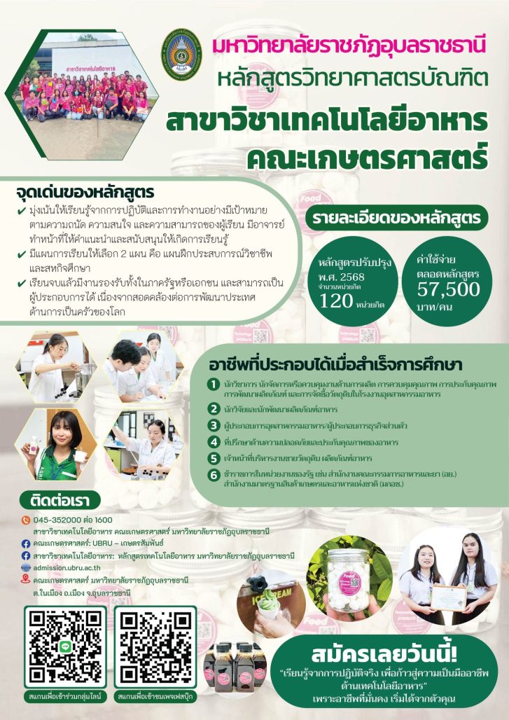อาจารจารย์สาขาวิชาเทคโนโลยีอาหาร
